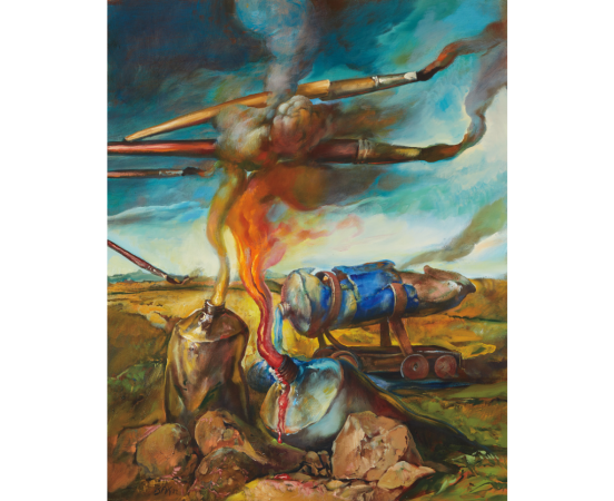 Samuel Bak은 홀로코스트 생존자로서의 경험을 바탕으로 개인적인 기억, 역사적 사실, 상징주의를 함께 엮어 초현실적인 그림을 만듭니다. 그는 예루살렘의 베잘렐 국립 박물관과 텔아비브 미술관 에서 개인전을 열었으며 , 그의 작품은 전 세계의 홀로코스트 박물관에 전시되었습니다. 제2차 세계 대전 직전 폴란드 빌니우스의 유대인 가정에서 태어난 Bak은 1940~44년까지 소련과 독일의 점령 하에 살았습니다. 그와 그의 어머니는 지역 수녀원에서 보호를 받았지만, 그의 아버지와 네 명의 조부모는 나치에게 살해당했습니다. Bak은 1948년 새로 건국된 이스라엘로 이주한 후 뮌헨에서 미술을 공부했고 나중에는 예루살렘의 베잘렐 미술 학교에서 공부했습니다. 그의 작품에는 전쟁 의 여파가 두드러지게 나타나며, 20세기에 유대인 학살 과 그에 따른 유대인들의 해방을 나타내는 시각적 은유도 마찬가지입니다 .