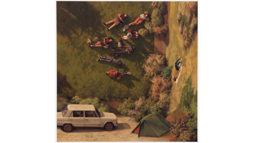 Cinta Vidal은 중력과 건축적 관습에 도전하여 교차하는 관점의 캡슐화된 장면을 만듭니다. 나무 패널에 아크릴로 그린 Vidal은 이 그림을 "무중력 구조물"이라고 부르며, 각 작품은 사람의 삶에 대한 내적 관점이 주변 현실과 일치하지 않을 수 있는 방식을 살펴본다고 말합니다. 그녀의 많은 그림에서 교차하는 평면은 MC Escher 의 그림을 다소 연상시키는데 , 모든 각도와 사용 가능한 표면에는 일상 생활을 하는 다채로운 캐릭터가 살고 있습니다.
